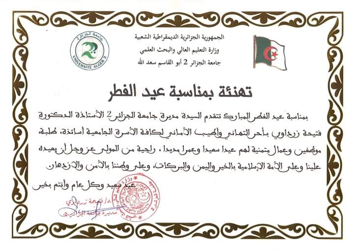 تهنئة بمناسبة عيد الفطر المبارك