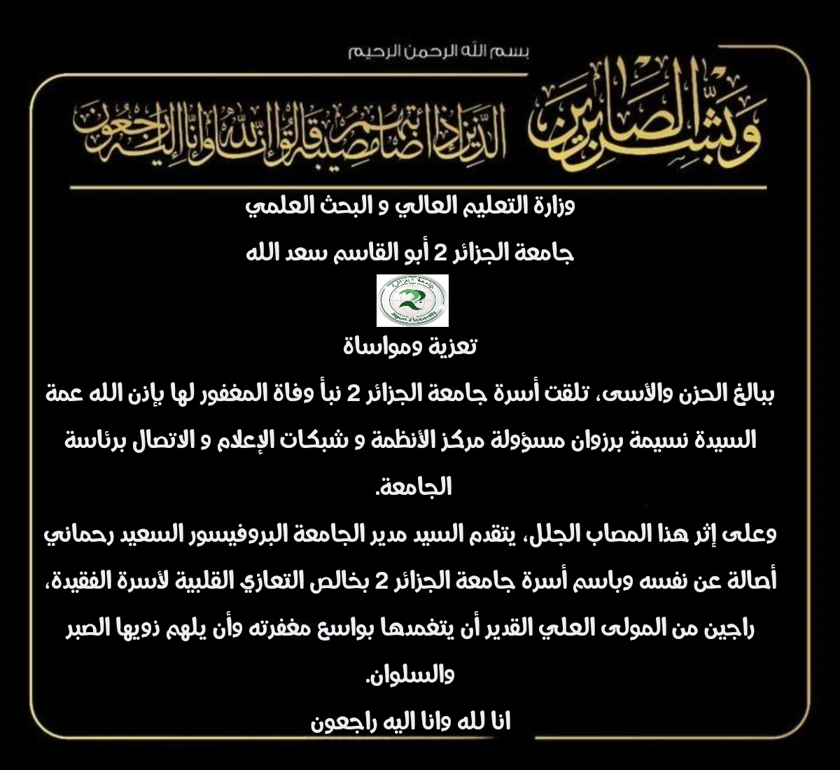 كلمة رئيس الجامعة