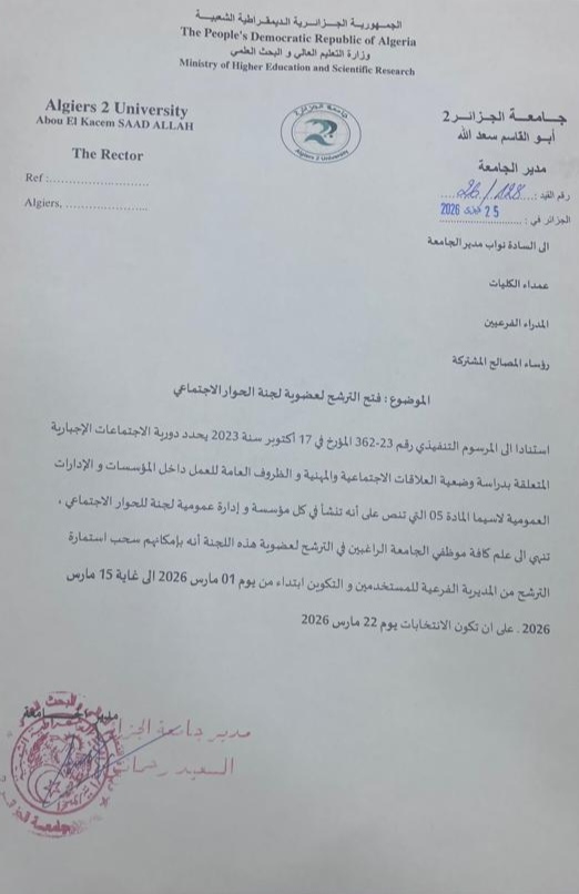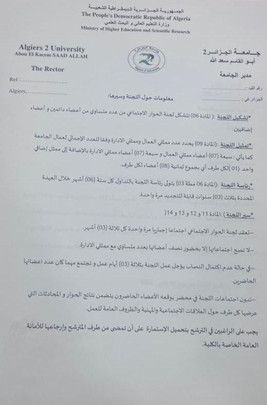 إعلان عن فتح الترشح لعضوية لجنة الحوار الإجتماعي