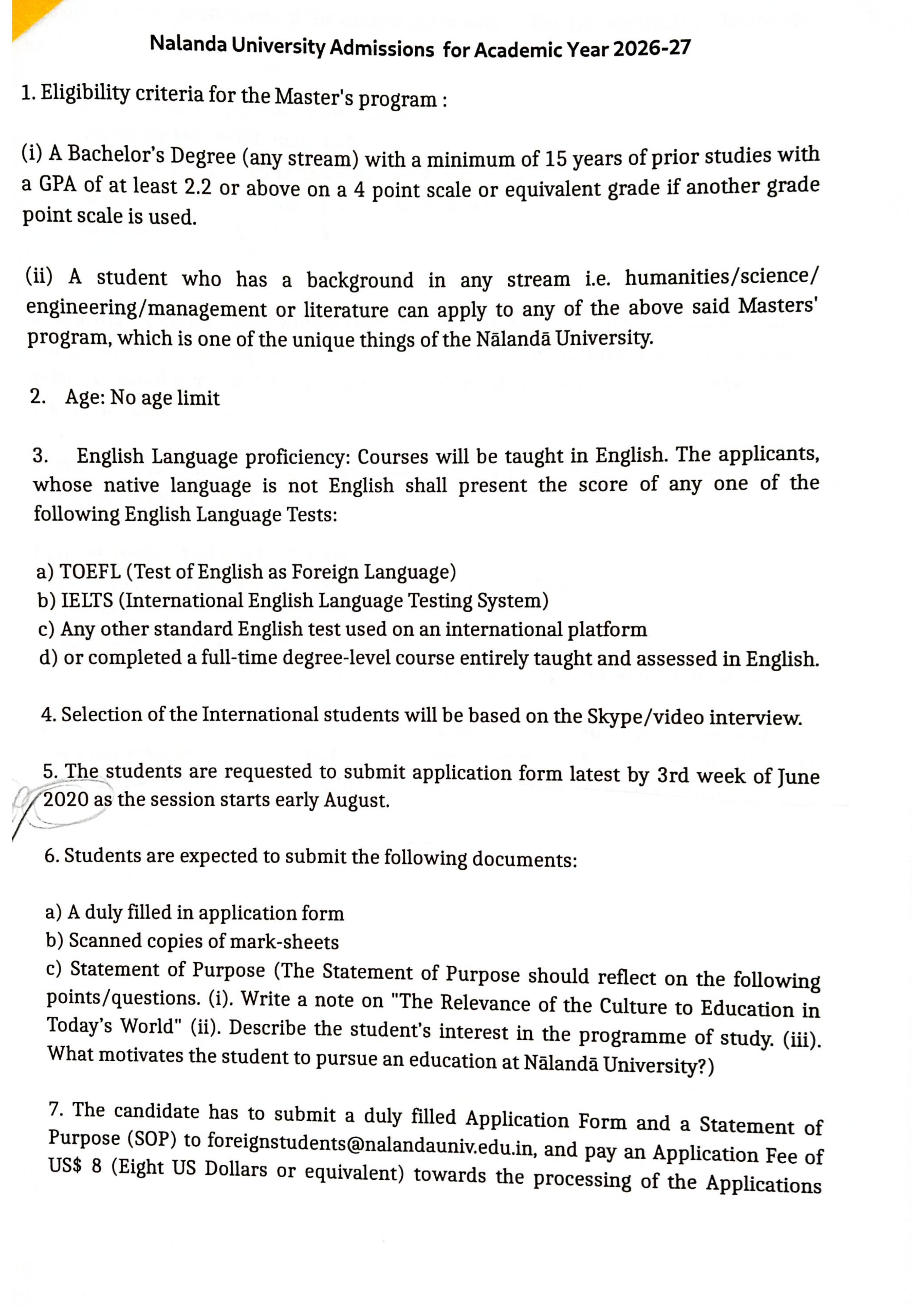 Objet : Lancement d'un appel à candidature au programme de Master à l'université indienne Nalanda