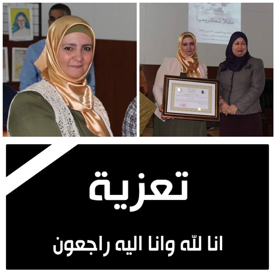 ببالغ الحزن و الأسى تلقينا نبأ وفاة المغفور لها بإذن الله الدكتورة آمال بن خلف الله أستاذة بقسم اللغة الإنجليزية بجامعة الجزائر 2 ، وإزاء هذا المصاب الجلل تتقدم أسرة جامعة الجزائر 2 أبو القاسم سعد الله إلى عائلة الفقيدة بأصدق التعازي، راجين من المولى عز و جل أن يتغمد روحها بواسع رحمته، وأن يسكنها الفردوس الأعلى وأن يلهم ذويها الصبر والسلوان.