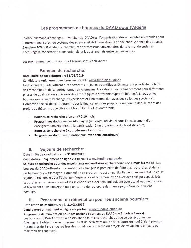 Programme de bourses d'études et de recherche de l'office Allemand d’échange universitaire (DAAD) Publié le 19 août 2019. Affichages : 8071