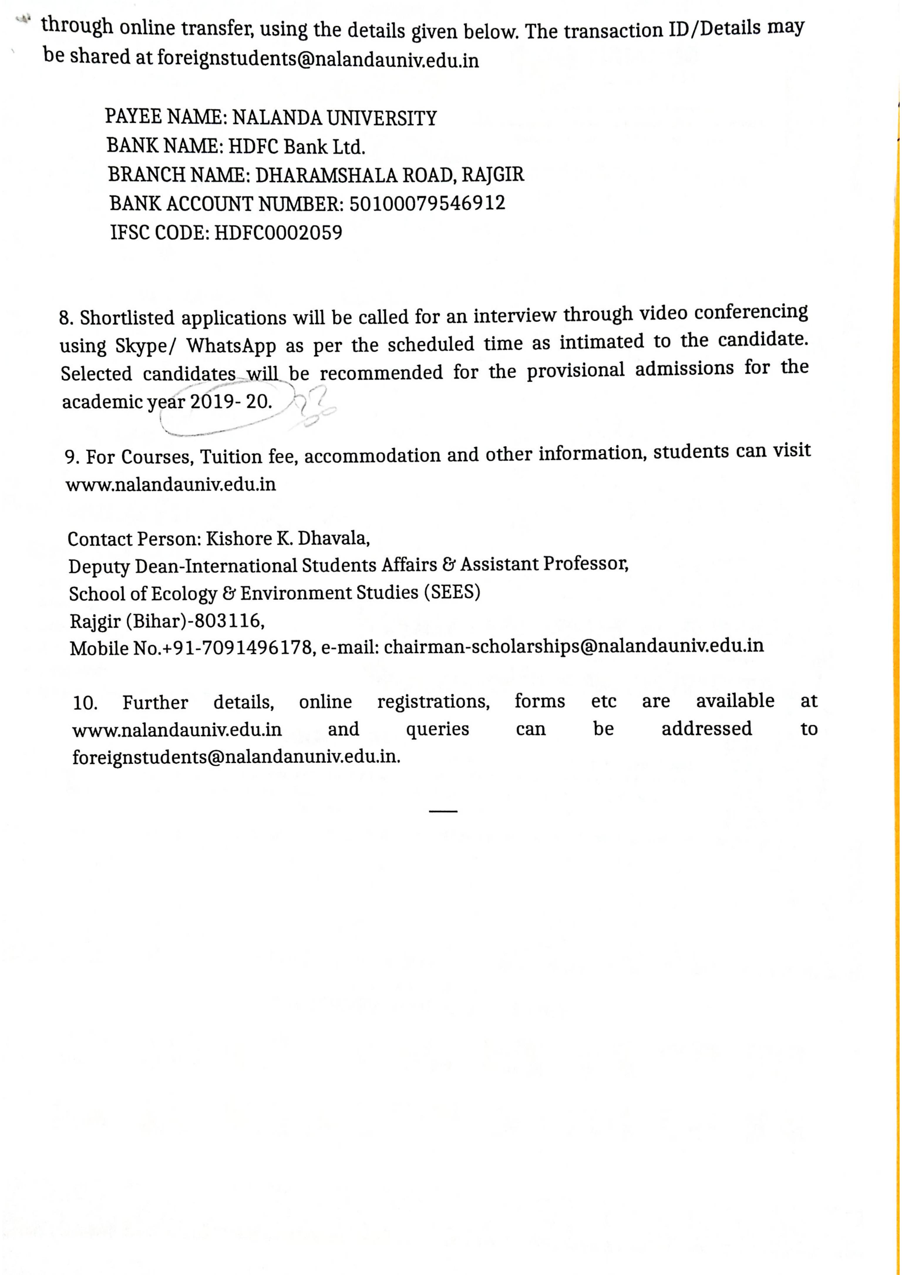 Objet : Lancement d'un appel à candidature au programme de Master à l'université indienne Nalanda